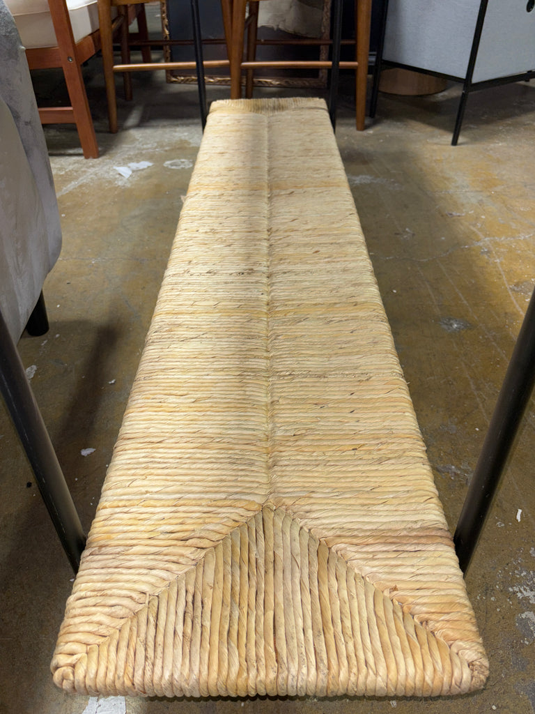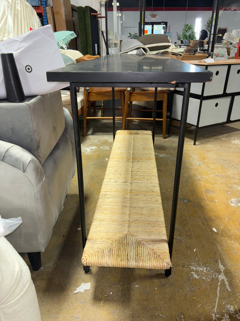 Metal and Rush Weave Top Console Table - Black SHOWROOM ITEM