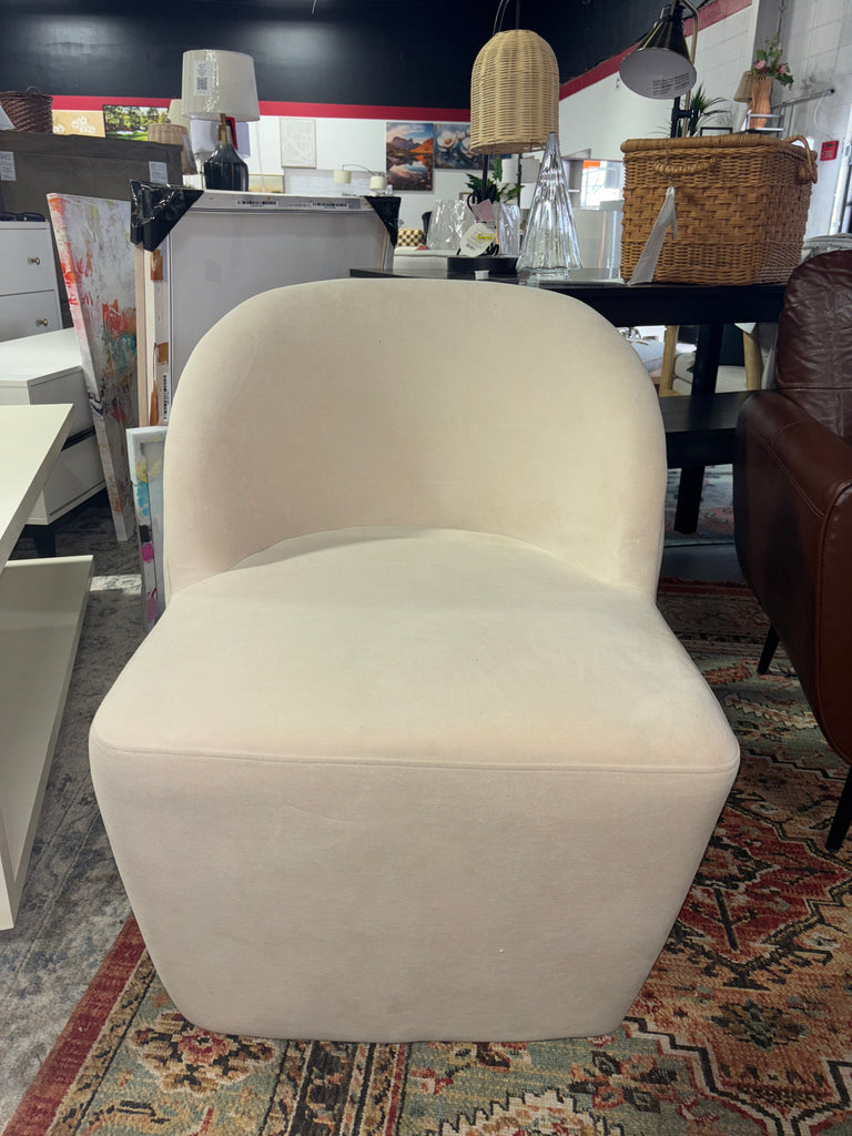 Note: Comparable stock photo used. Item is a beige velvet and NOT cream boucle. See pictures for details.