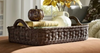 Studio McGee Rattan Decorative Tray with Leather Handles Dark Brown Threshold SHOWROOM ITEM