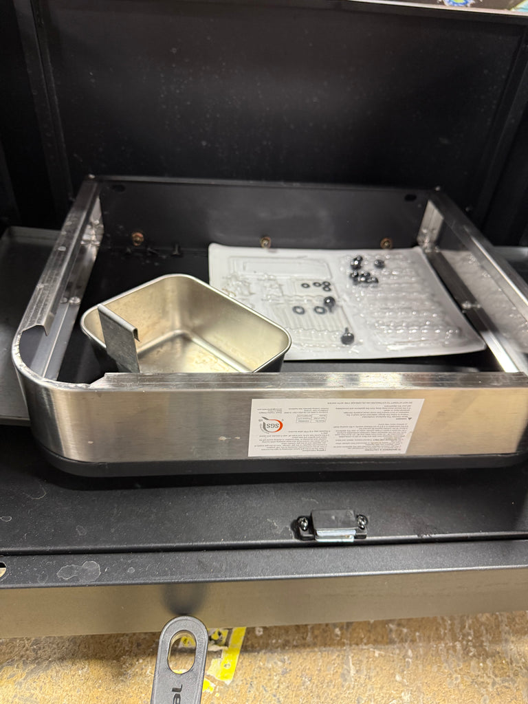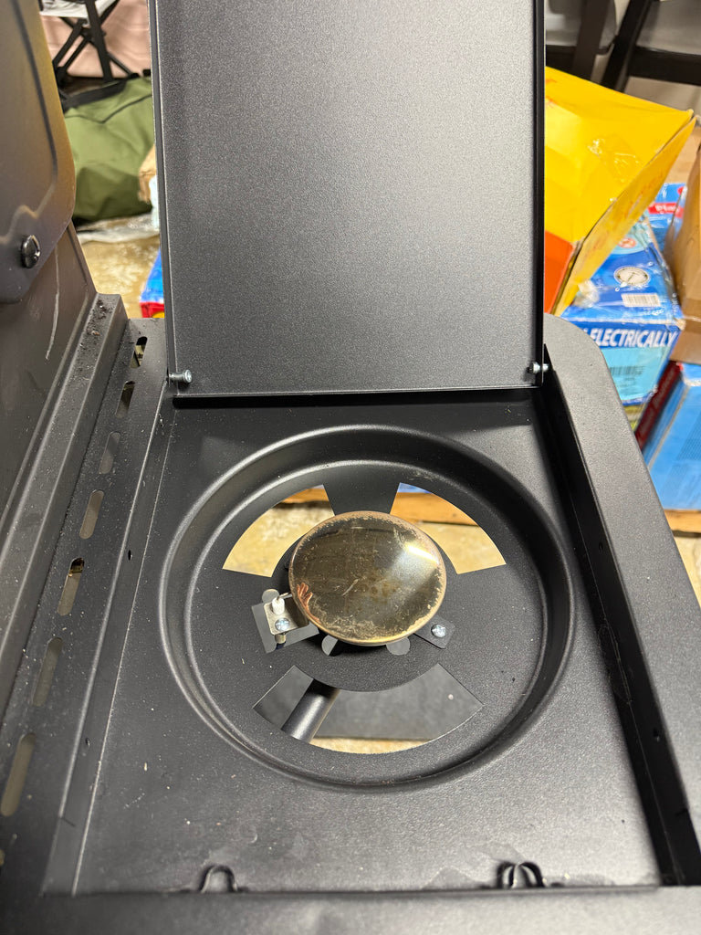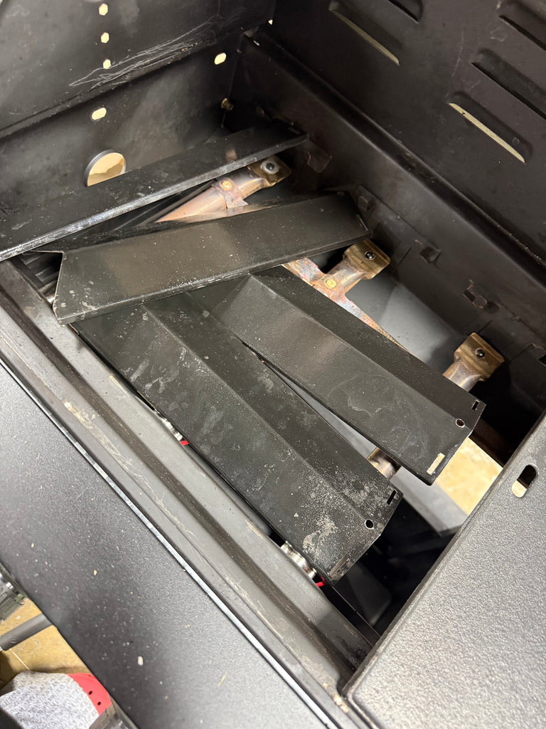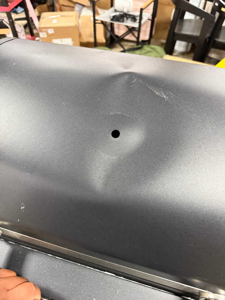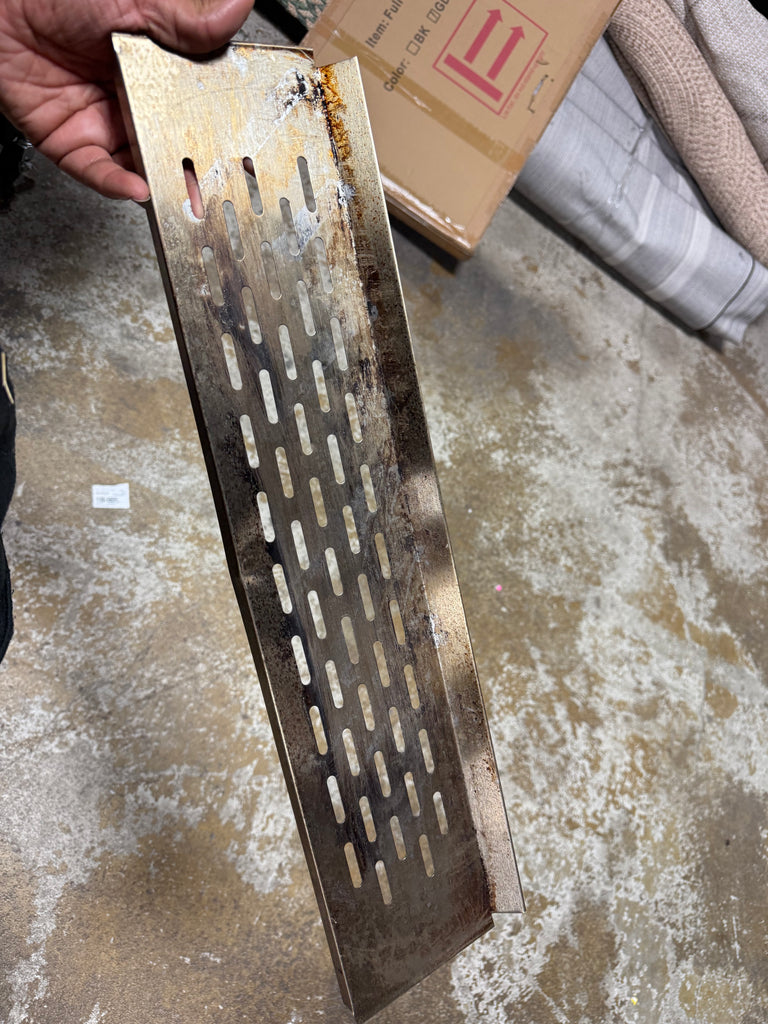 Note: Grill shows signs of use, second shelf needs attatched, doesn't have a top, has grease/oil residue to racks, has dents and scuffed paint, also has water marks, door needs attatched, doesn't include all hardware, see in house photos