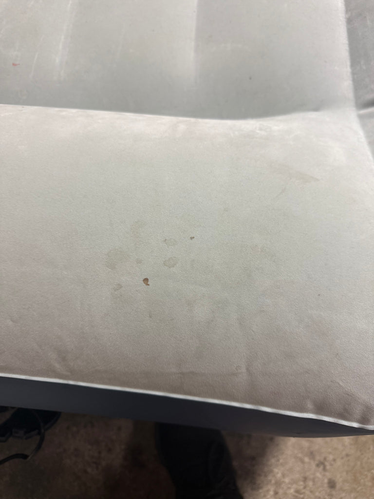 Note: Tested and turns on, matress has some color stains, missing plastic door cover for cord storage, see photos