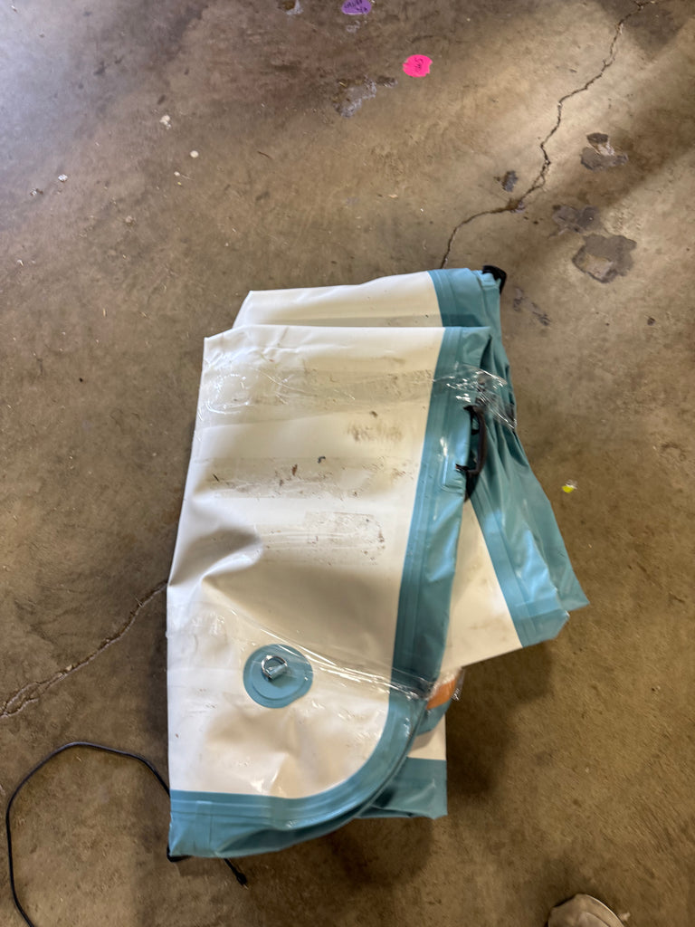 Note: Item dosent come with a pump but you can buy a replaement one on Walmart's website with the link we provided below or you can find one by looking up paddle board replacement air pump. item is also very dirty and seed to be cleaned it also has a leak that will need patched