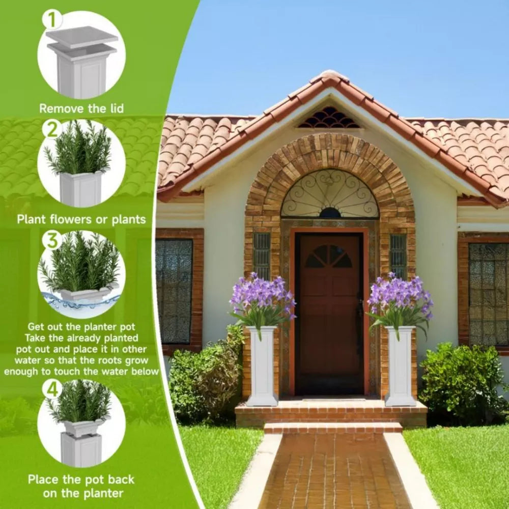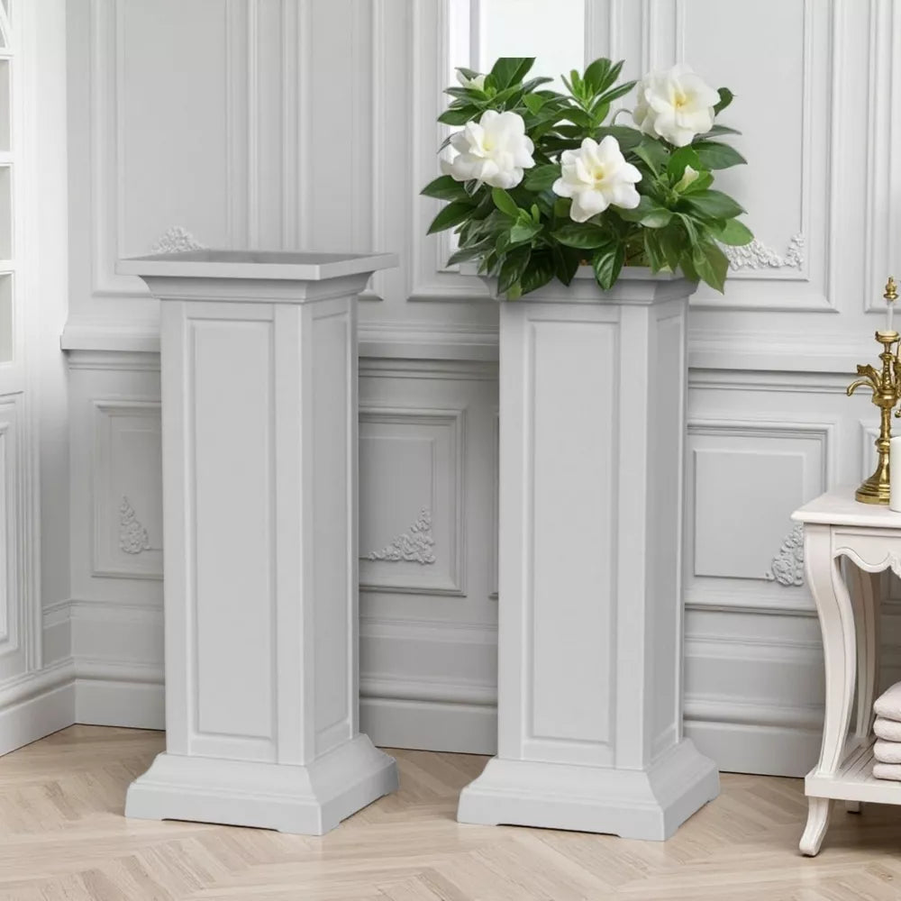 Tall Planter Decorative Plant Pedestal Stands Garden Bed - Set of 2