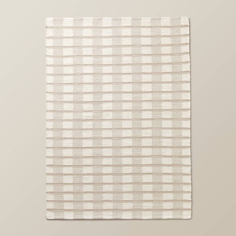 Rib Stripe Plaid Handmade Woven Area Rug Tan/Cream/Khaki - 5'x7' Area
