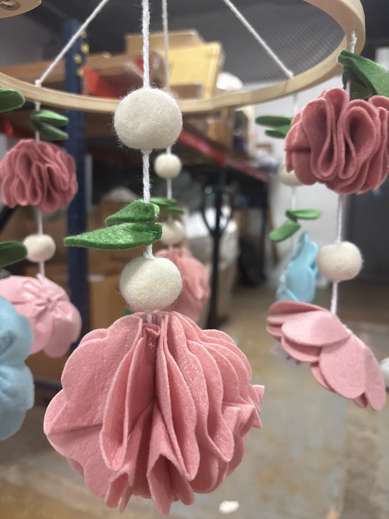 The Peanutshell Deluxe Wooden Crib Mobile Set with Arm - Pink/BlueSHOWROOM ITEM