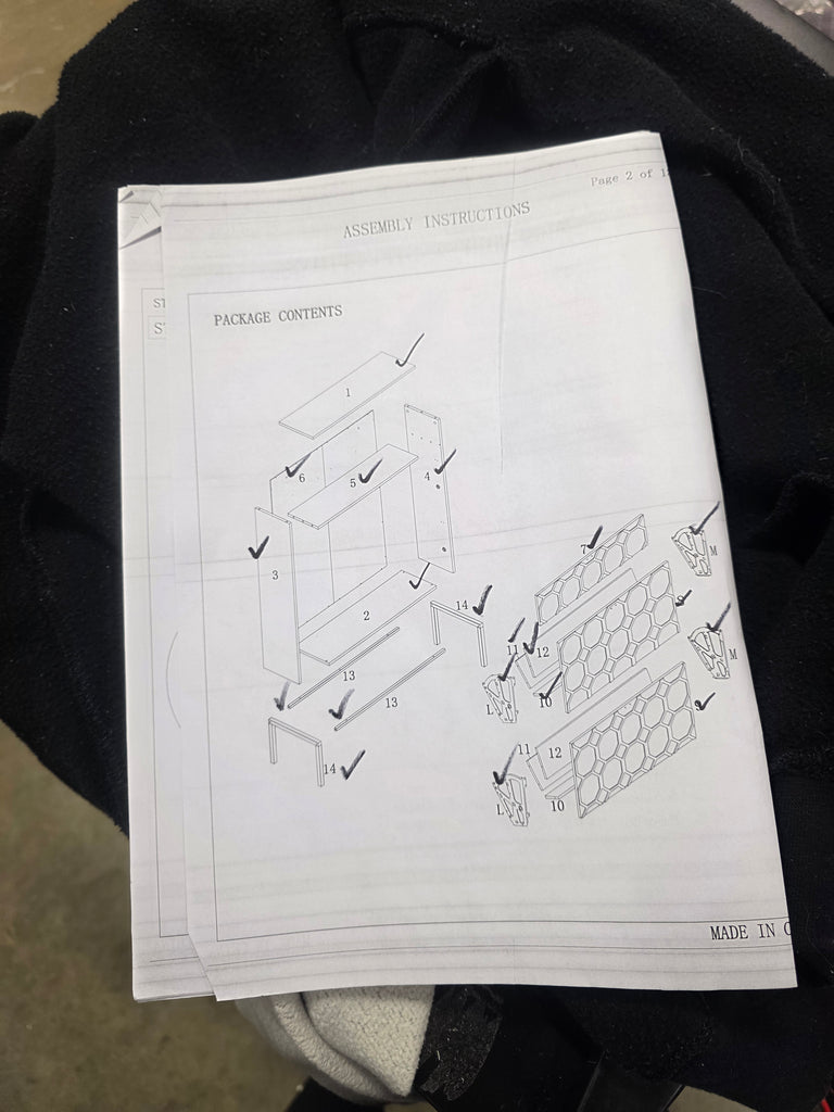 Note: One of the drawer faces has a chip out of the edge. The M and L brackets are bent slightly and will need to be bent back. Some of the smaller internal pieces have some very light chipping along the edges. See pictures for more details.