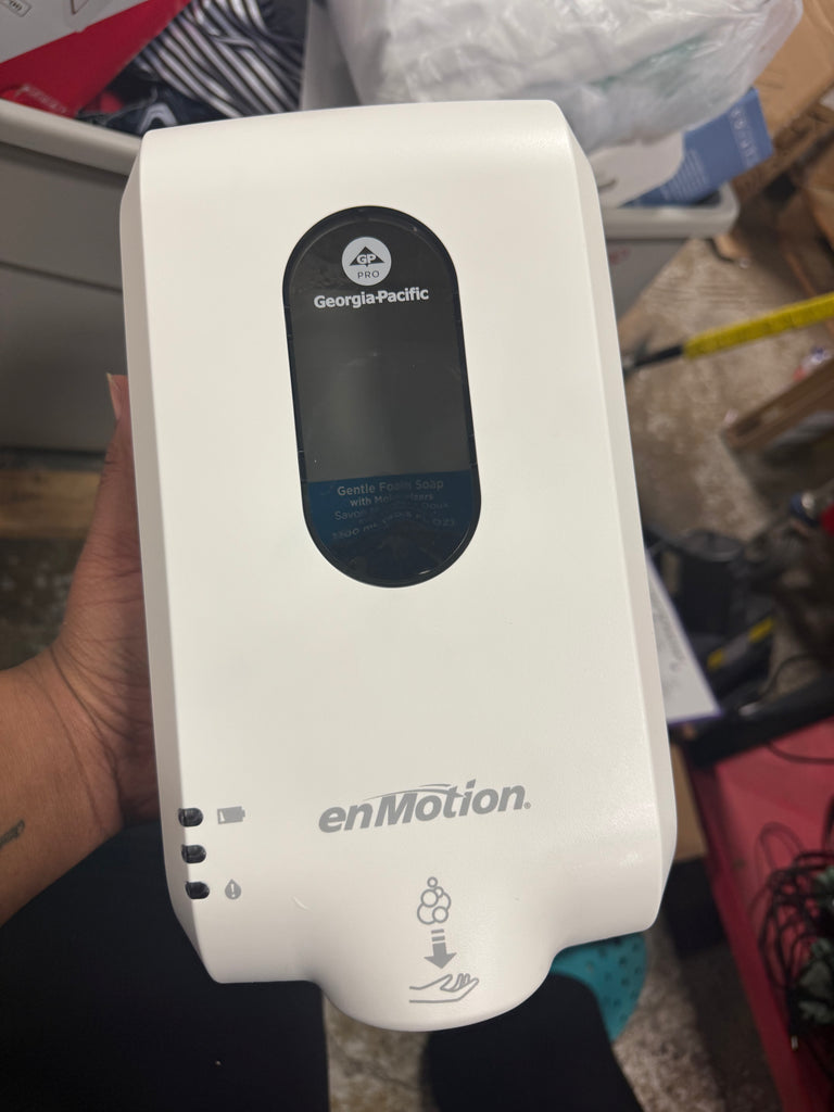 Note: Tested and turns on, already has a soap bag inside dispenser, see photos