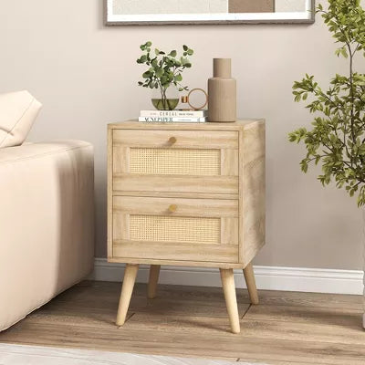 1/2 PCS Rattan Nightstand Boho Accent Bedside Table with 2 Storage Drawers Natural