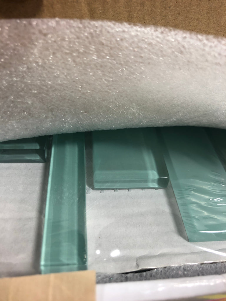 This is an in box item in great condition. Color is light teal. Includes 2 boxes of 5 sqft. each. Total of 10 sqft in a total of 10 sheets.