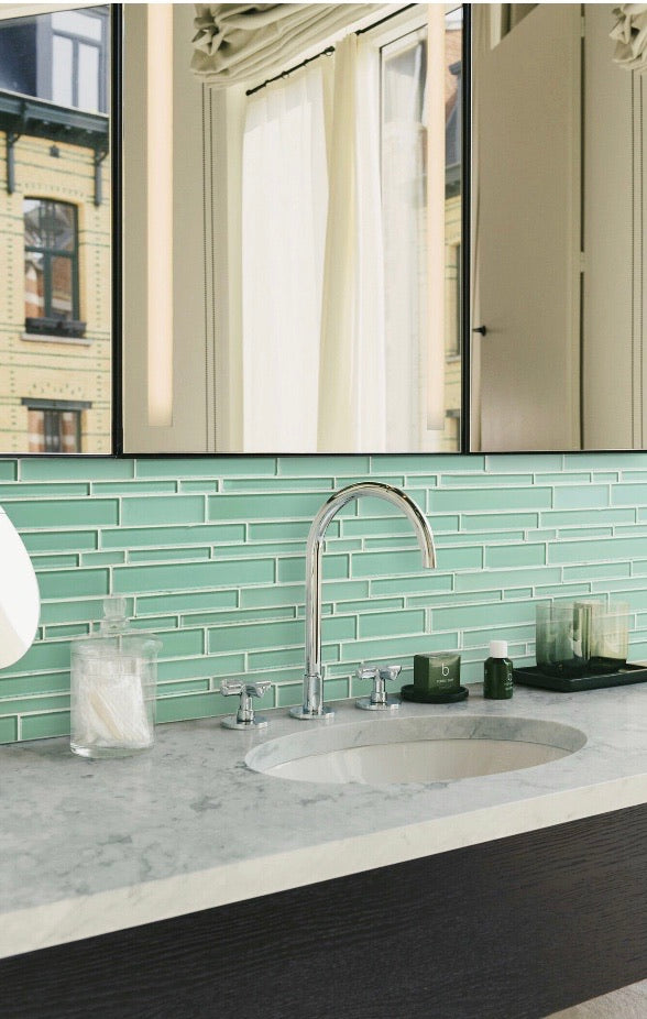 (10 sqft.) Light Teal Glass Mosaic Tile CG544