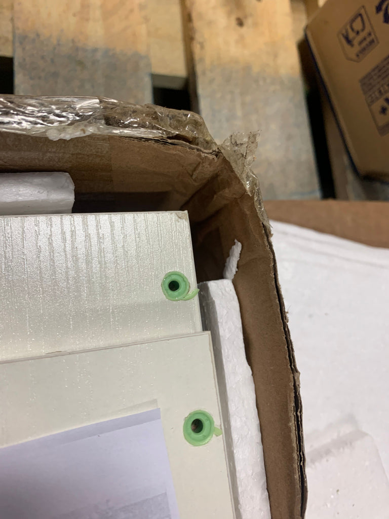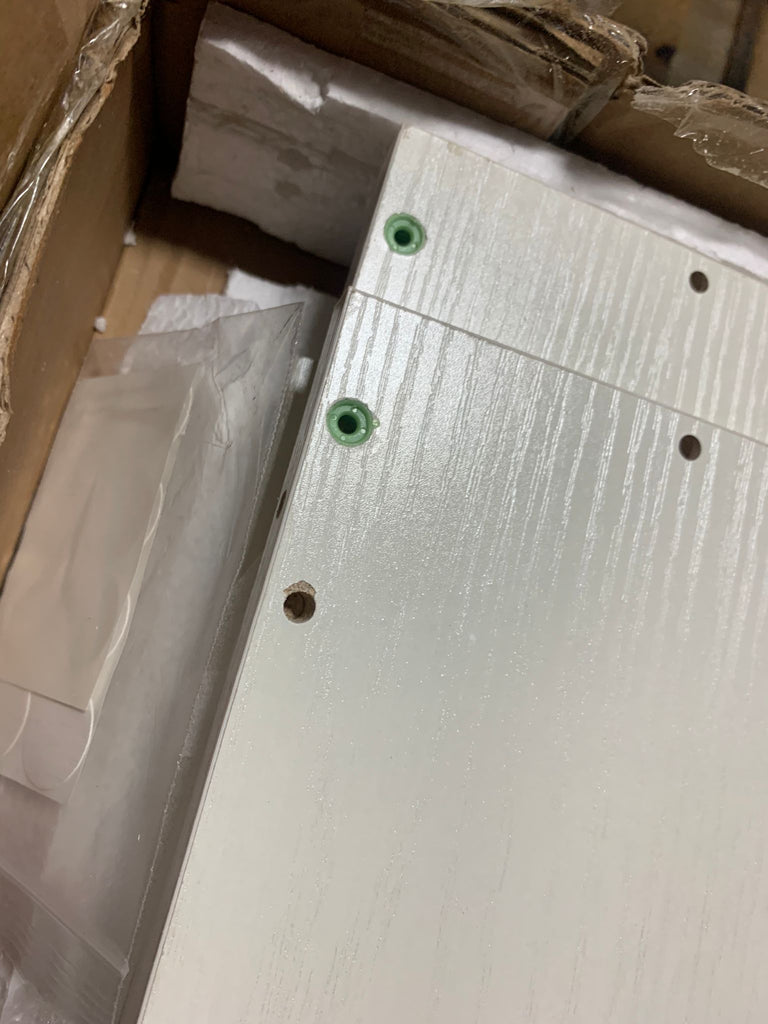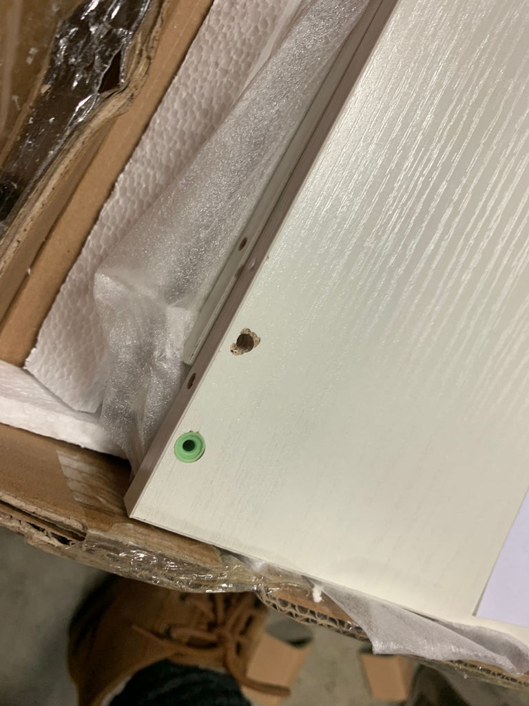 Open box, The color is white wood grain, Size: 13"x13", there are some cosmetic damages see in house photos for more details