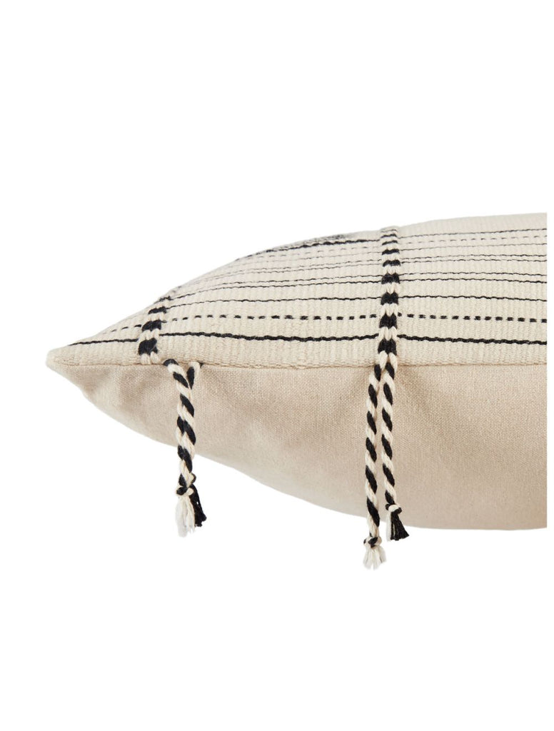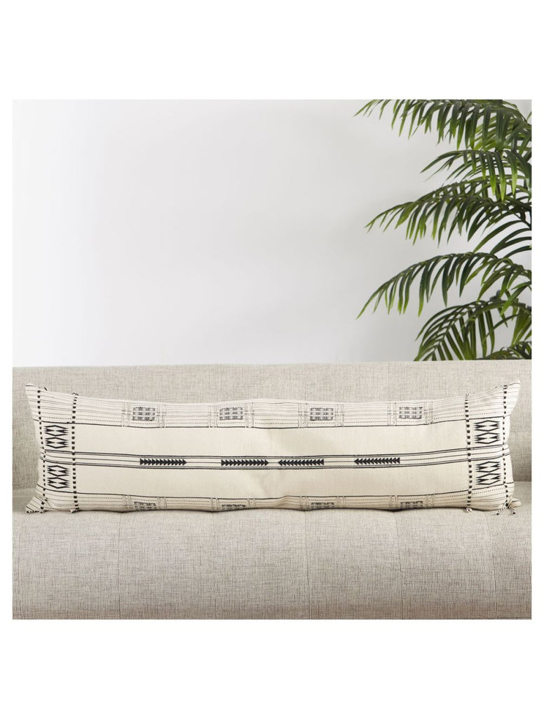 13 In x 48 In Zeliang Hand-Loomed Tribal Cream/ Black Lumbar Pillow