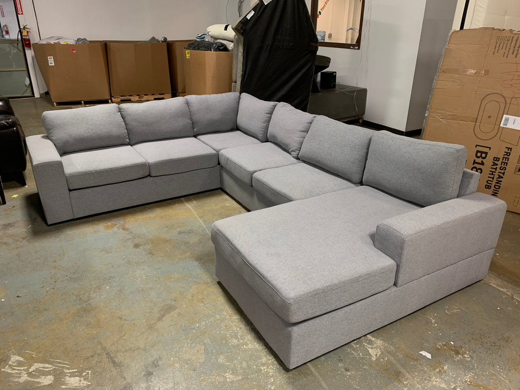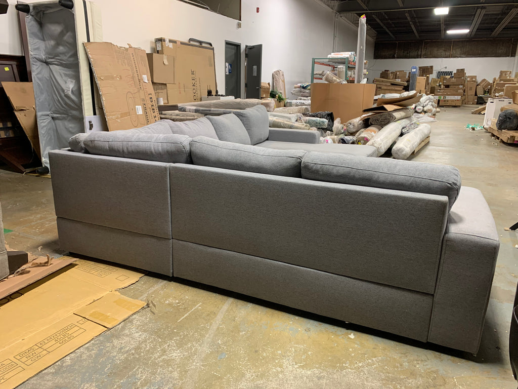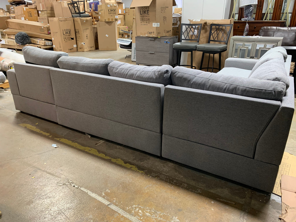 This sectional is in GREAT condition. Some small stains, one on seat cushion and the other one is on the end of the chaise piece - both shown in photos. No rips in fabric. All pieces detach from one another. Please see all photos and the link below for more details.