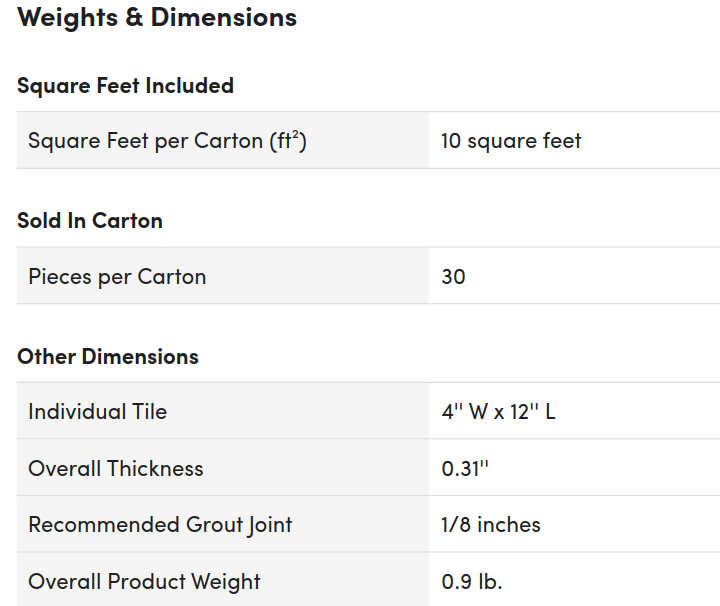For more details: https://www.wayfair.com/home-improvement/pdx/msi-urbano-4-x-12-ceramic-subway-tile-mvp10500.html?piid=#seemoredrawer