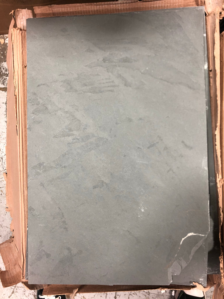 This is an open box item in good condition. (10 boxes ) Boxes include 16 square feet of slate tile in each box. Total ~160 square feet of tile.