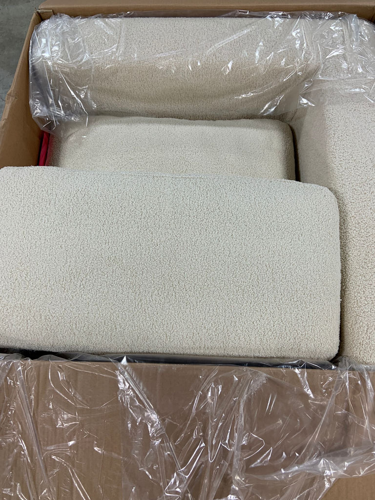 Open box, The color is Beige Polyester, see in house picture for color. Missing corner piece. (8 boxes)