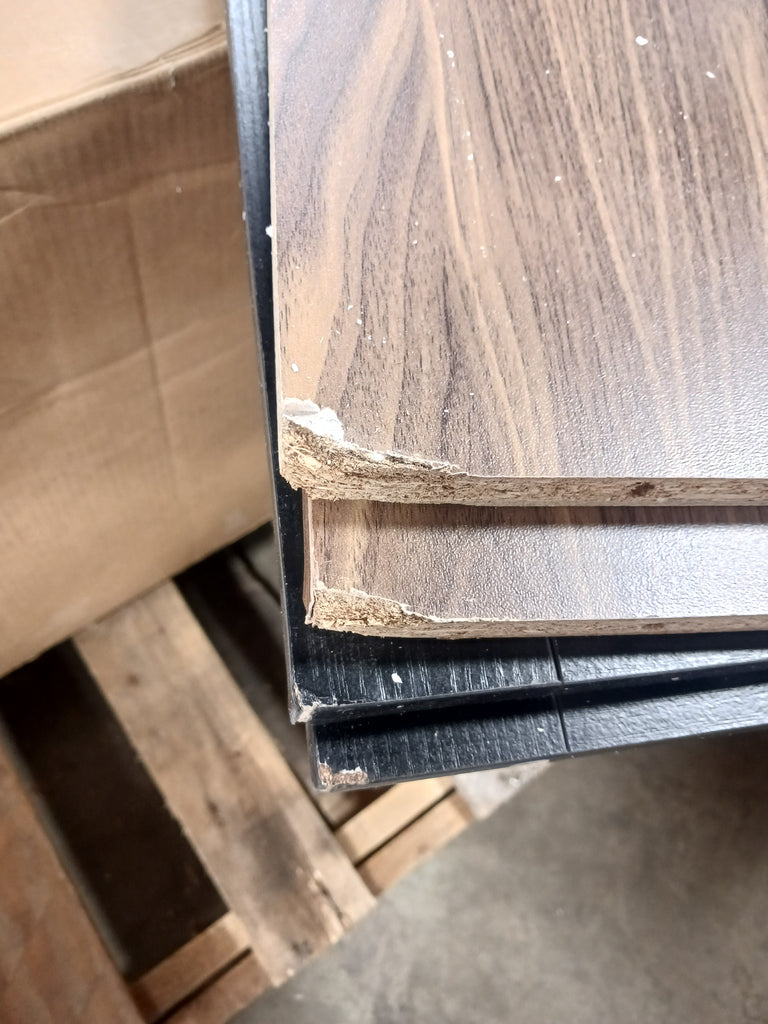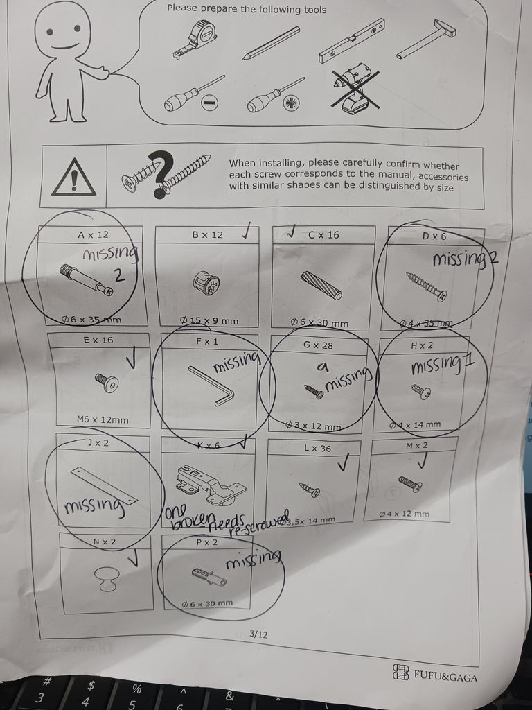 Note: This cabinet has dings on almost all corners of the woods pieces. One of the hinges needs to be rescrewed back together. There is hardware included but not in its original packaging, customer may need to obtain some hardware. See photos provided for damage and photo of which hardware pieces are missing.
