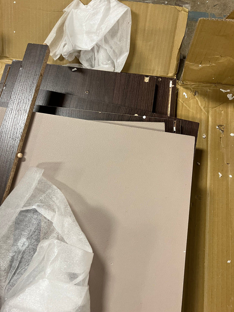Note: This item has beige doors but has been discontinued. There are no instructions and there's loose hardware in the box so possibly missing some. The item has to scratch and chipping throughout. One stabilizer bar is broken. See pictures for more details.