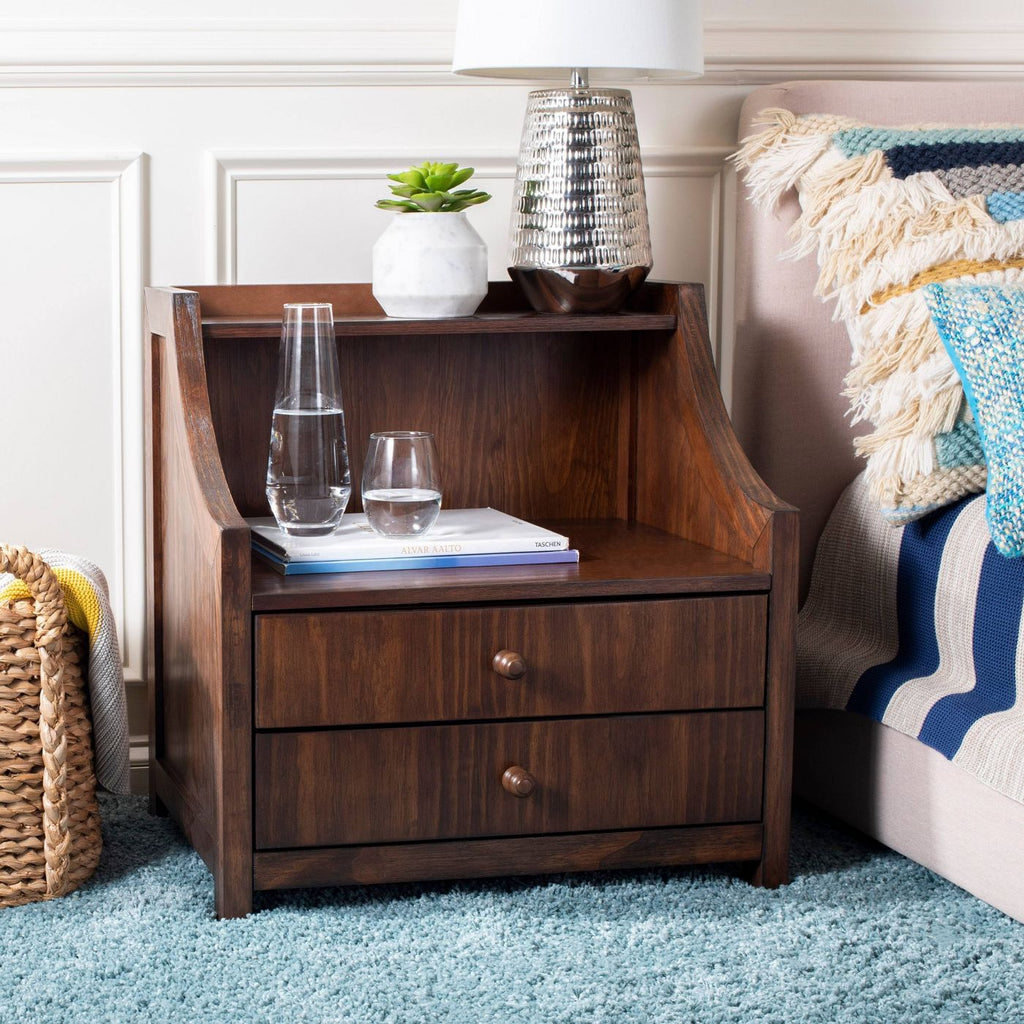 2 Drawer Ellie Mahogany Nightstand. In box item, assembly required. See link for further details and dimensions.