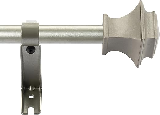 2 Pack Silver Curtain Rods for Window Nickel Drapery Pole with Square Finial Modern Adjustable Heavy Duty