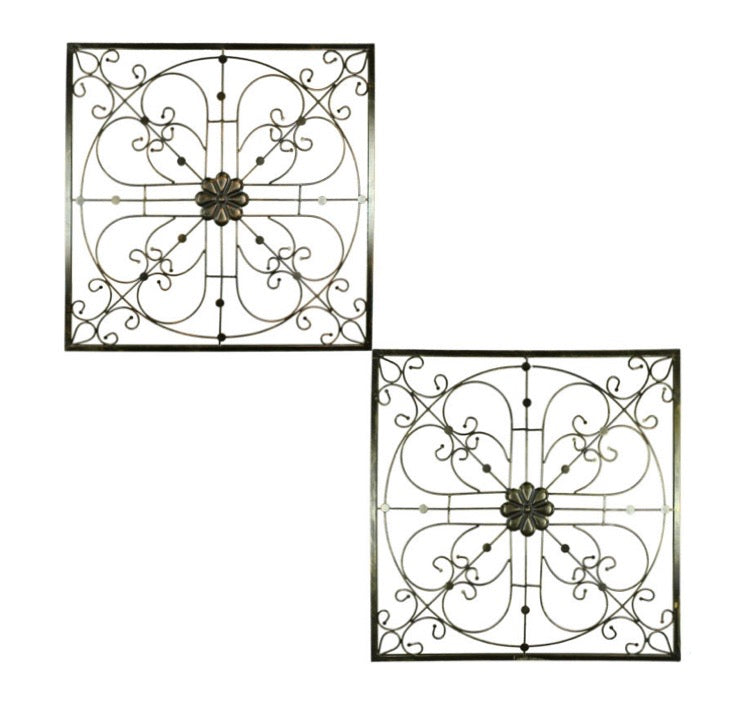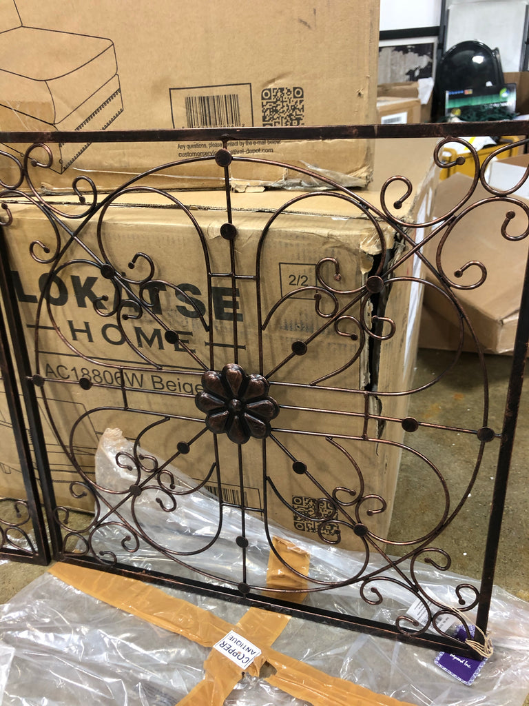 This is an open box item in great condition. Color is aged copper. Includes 2 pieces each measuring 24"x24".