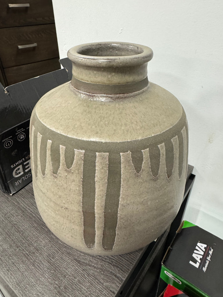 2-Tone Reactive Glaze Round Terracotta Vase in Grey
