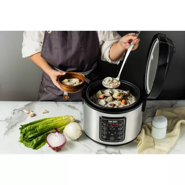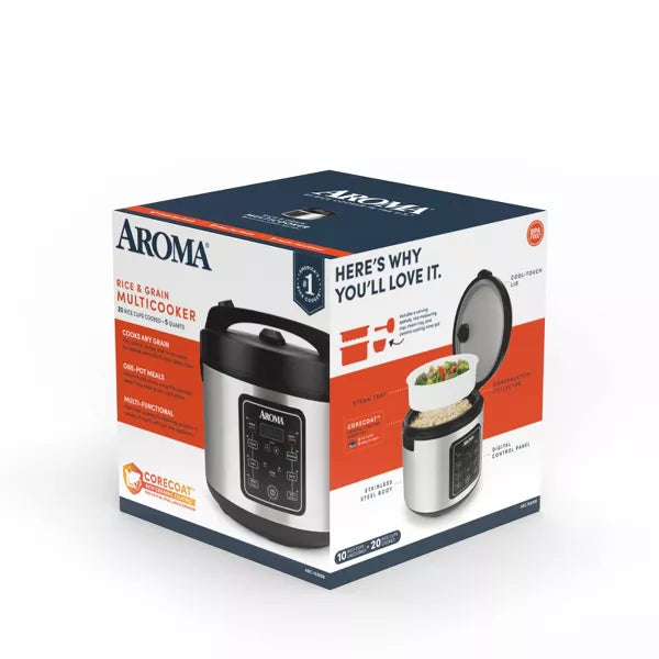20 Cup Digital Multicooker & Rice Cooker - Stainless Steel: 5 Settings, Automatic Keep Warm, Nonstick