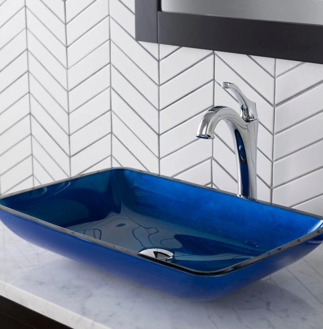 21-7/8" Irruption Blue Glass Vessel Bathroom Sink Only