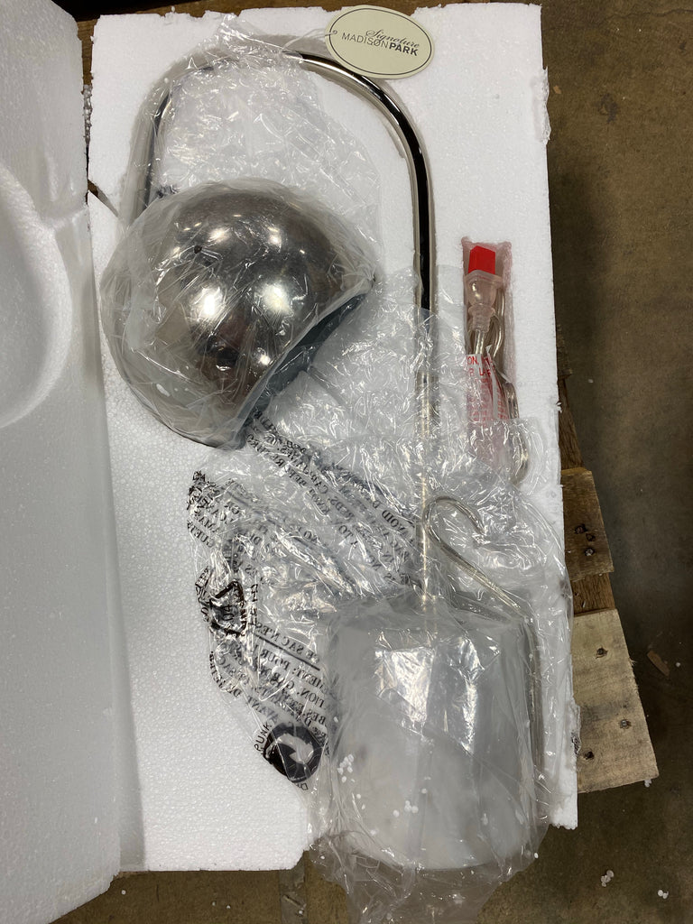 Item is in GREAT condition.  This is an opened in-box item.  Includes a lightbulb.  Finish: Silver