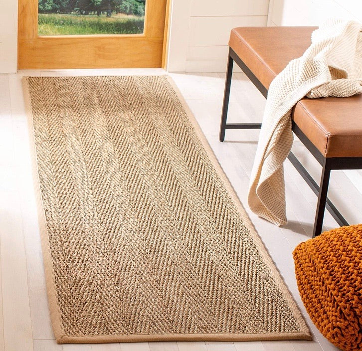 (2'6" x 12') Herringbone Natural and Beige Seagrass Runner CG281