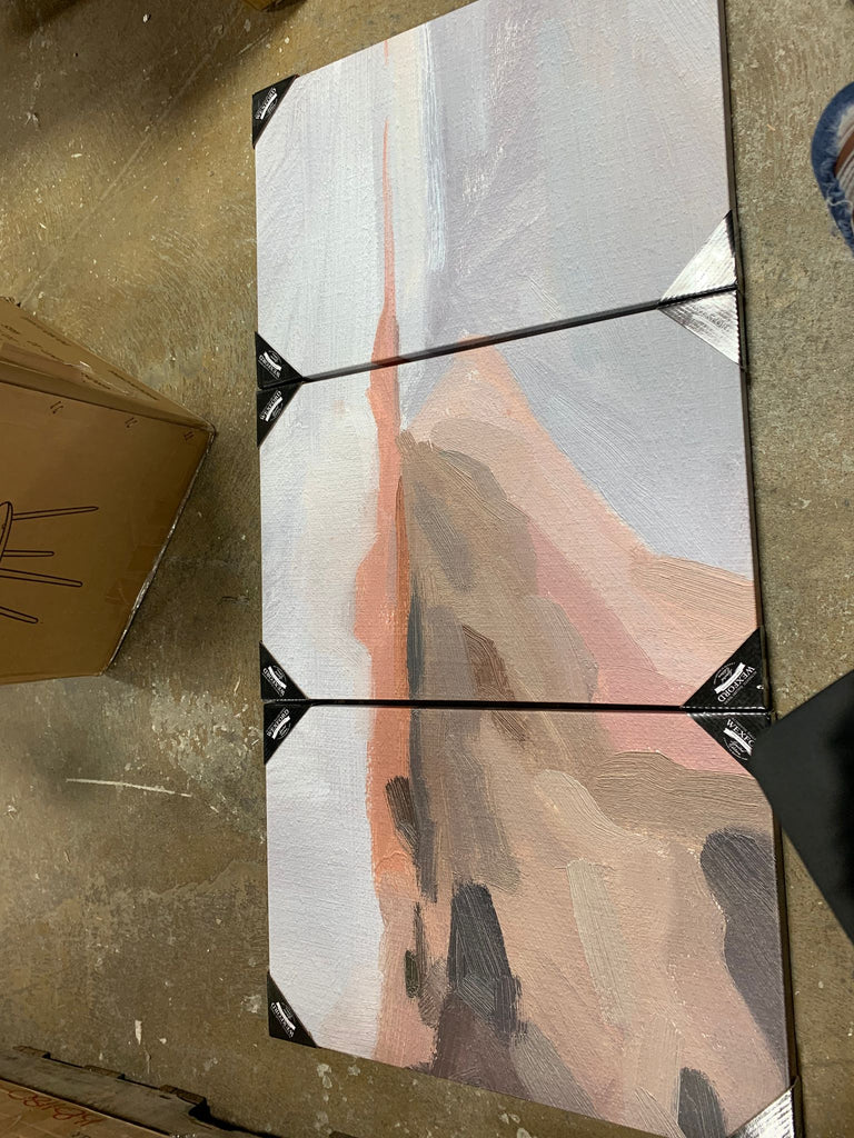 Original Packaging, The color is wrapped canvas, Size: 27"x54"x1", COMPARABLE LINK FOR PRICING ONLY SEE IN HOUSE PHOTOS FOR ACTUAL PRODUCT (set of 3)