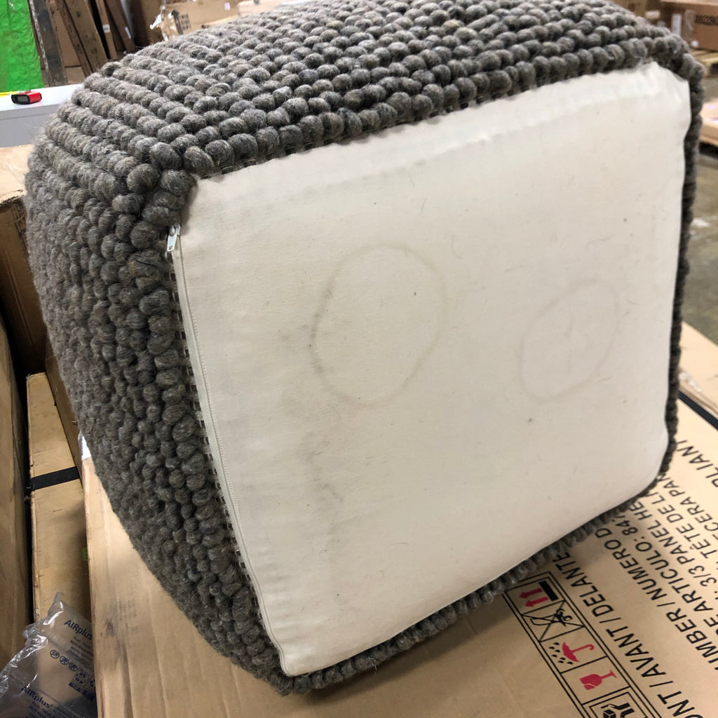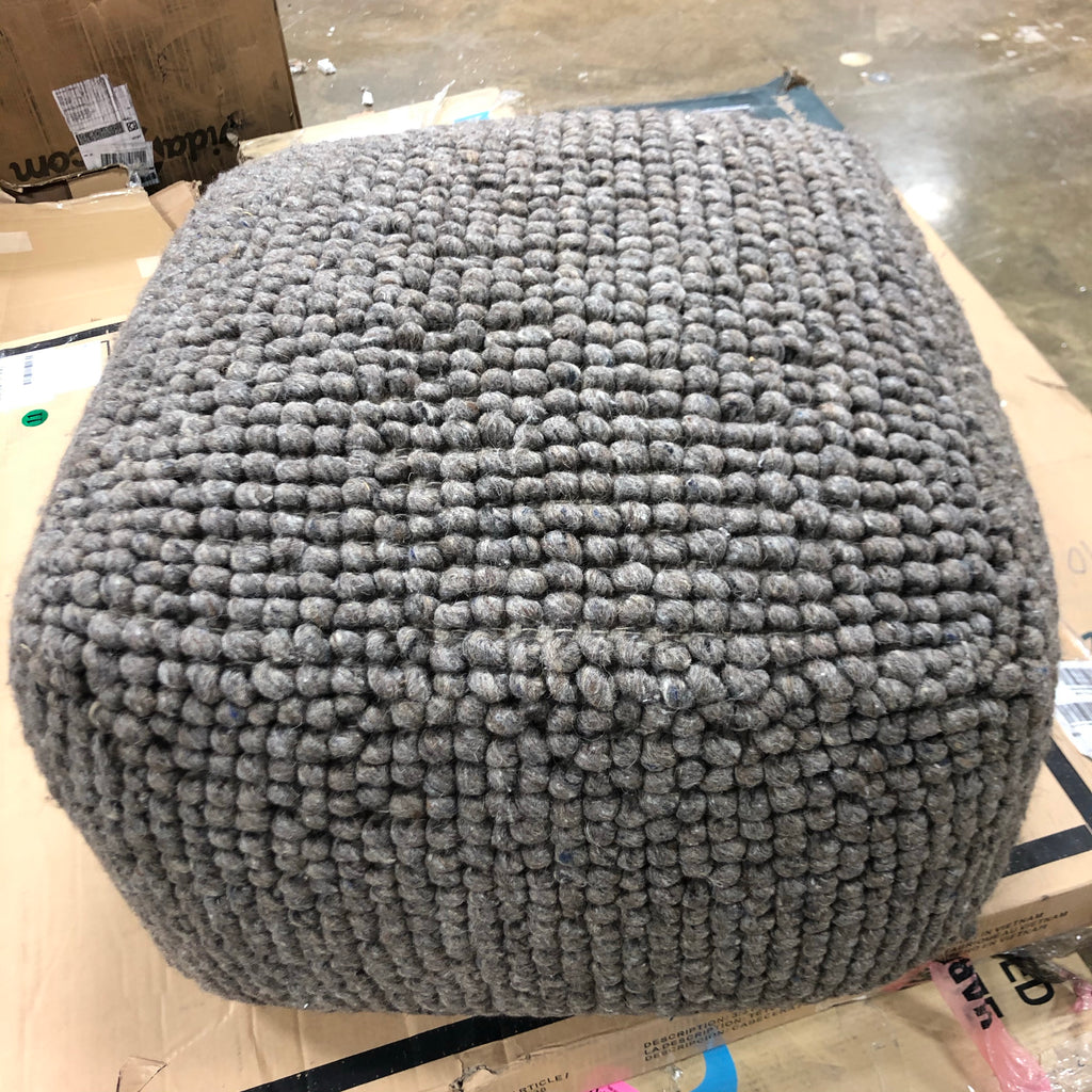 27" Square Chunky Wool Gray Pouf/Ottoman