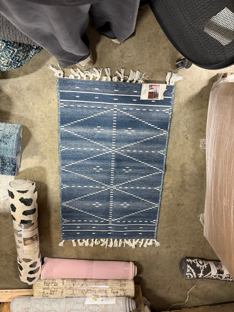 2'3"x3'9" Washable Woven Tapestry Accent Rug with Fringe Indigo