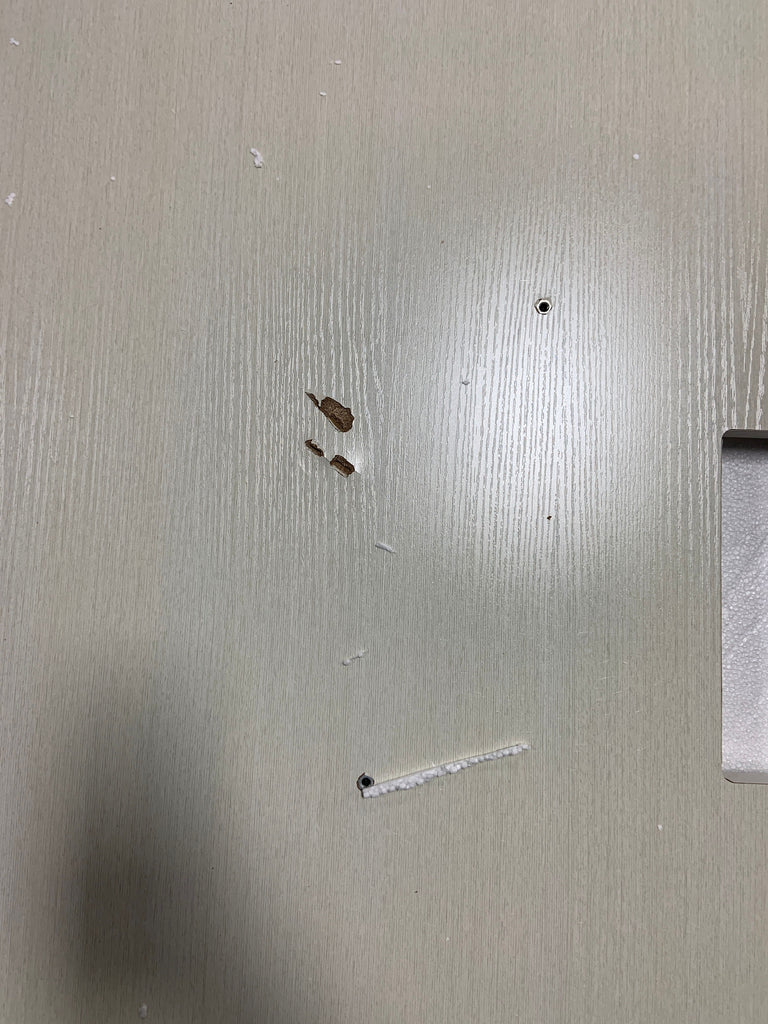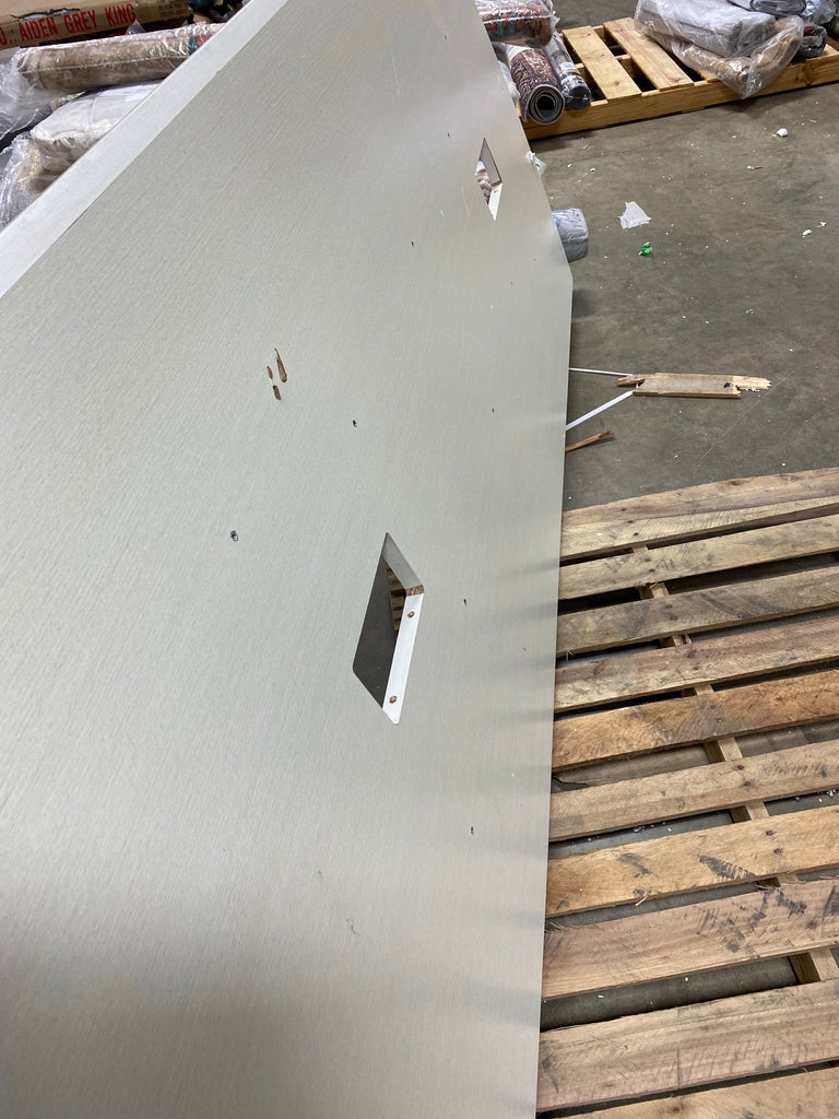 Open box, The color is textured sea salt, Size: 29.5'' H x 42'' L x 96'' W, scratches on the bottom of table top, see in house photos.