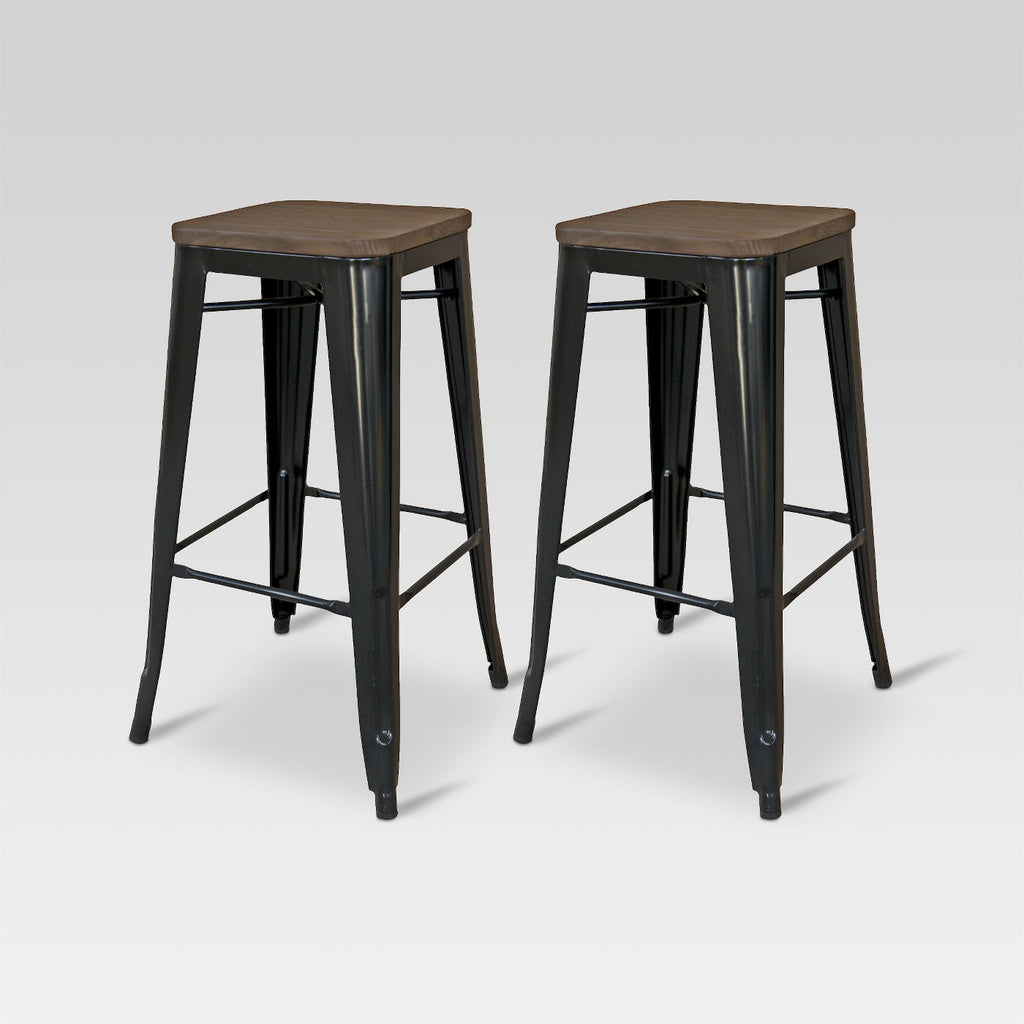 29" Hampden Industrial Wood Top Barstool (Set of 2) 7336