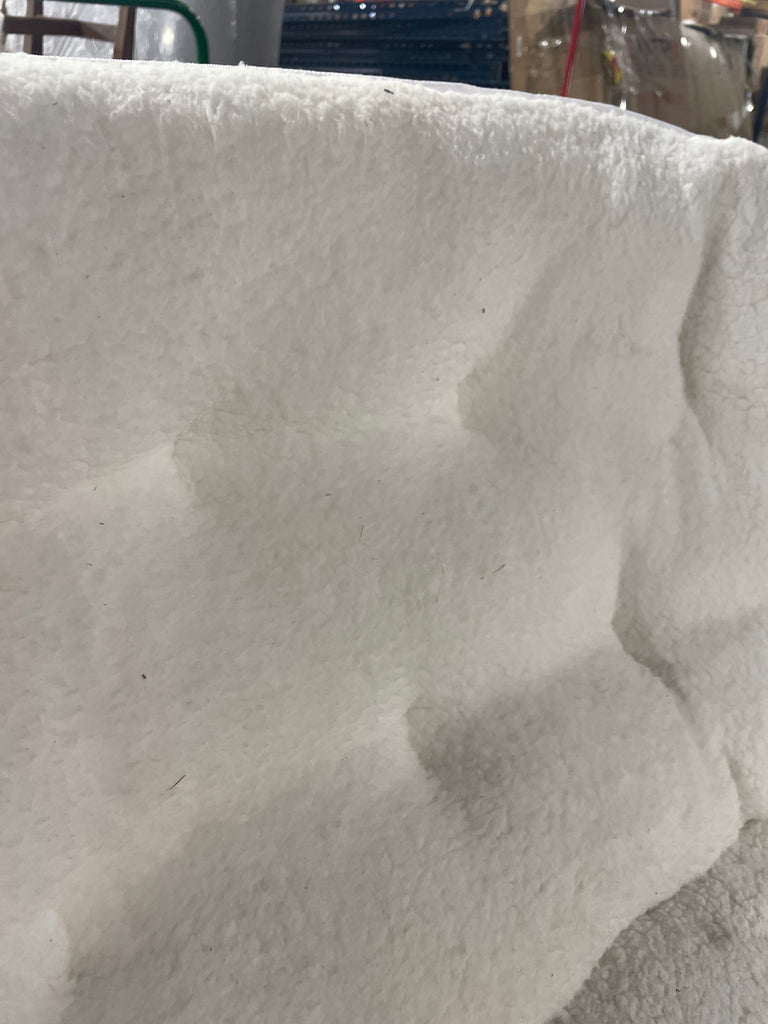 Note: This is out of the box and assembled but the sherpa cover does have some warehouse dust/dirt that would need to be washed, see pictures.