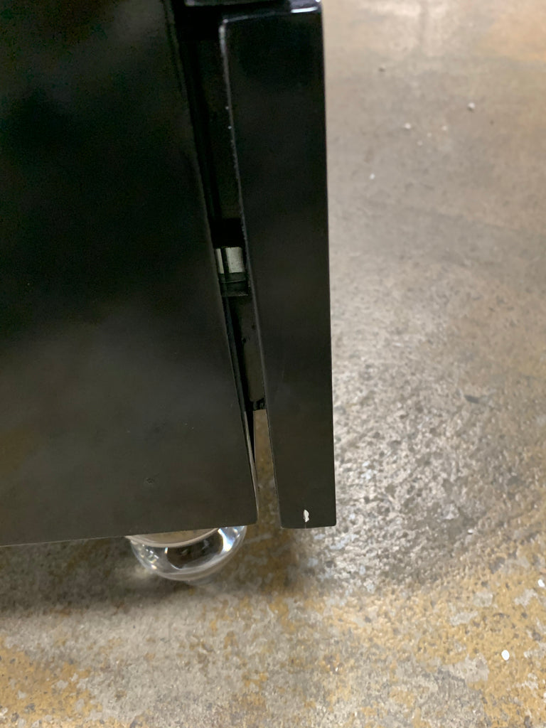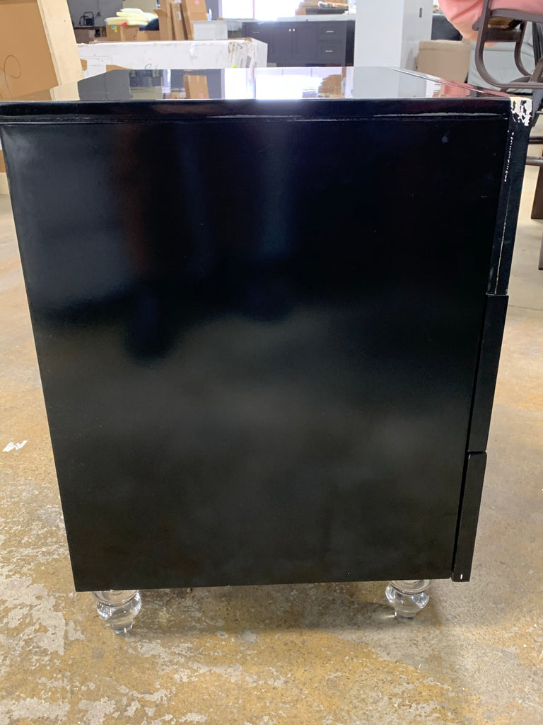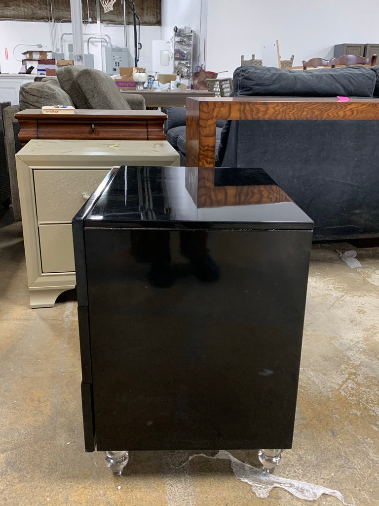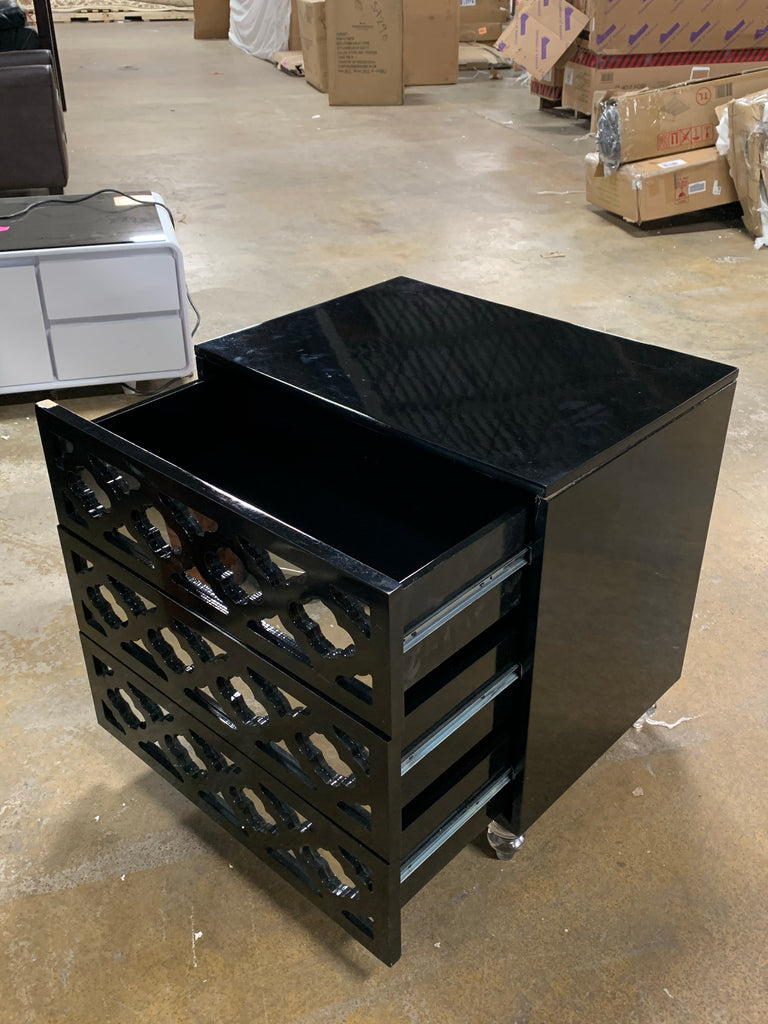 This chest is in good condition. The top left corner is missing paint and the right corner has an imperfection in the wood. Please see all photos for details. All 3 drawers open and close properly.