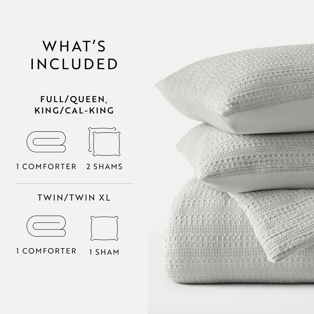 3 Piece Green Mist Waffle Textured All Season Down-Alternative Comforter Set, King