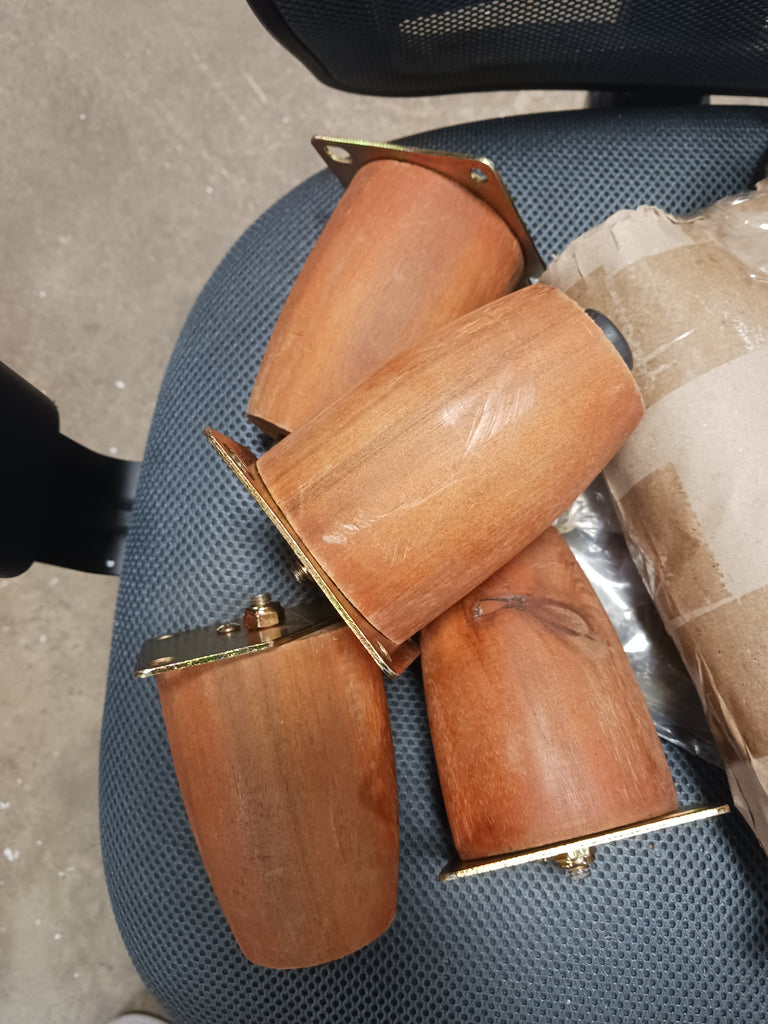 Note: There is slight chipping on the leg pieces. There is hardware included but not in its original packaging so customer may need to obtain some screws for assembly. There is also no gas bar for the ottoman included. See photo provided.