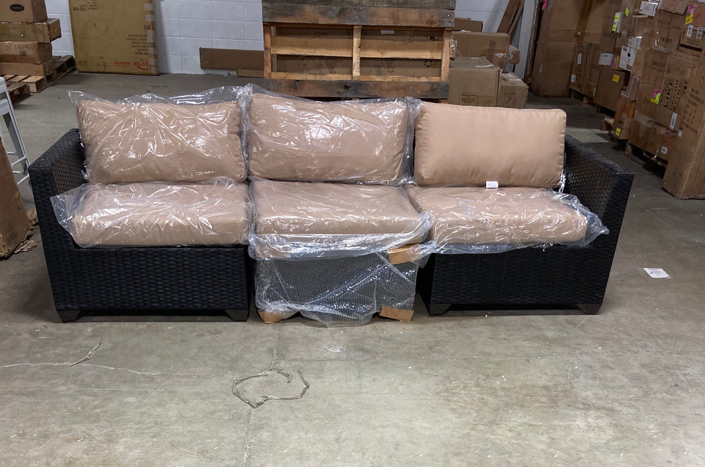 3 Piece Patio Sofa, Mocha/Wheat **AS IS** OP005 (3 PIECES + 6 CUSHIONS)