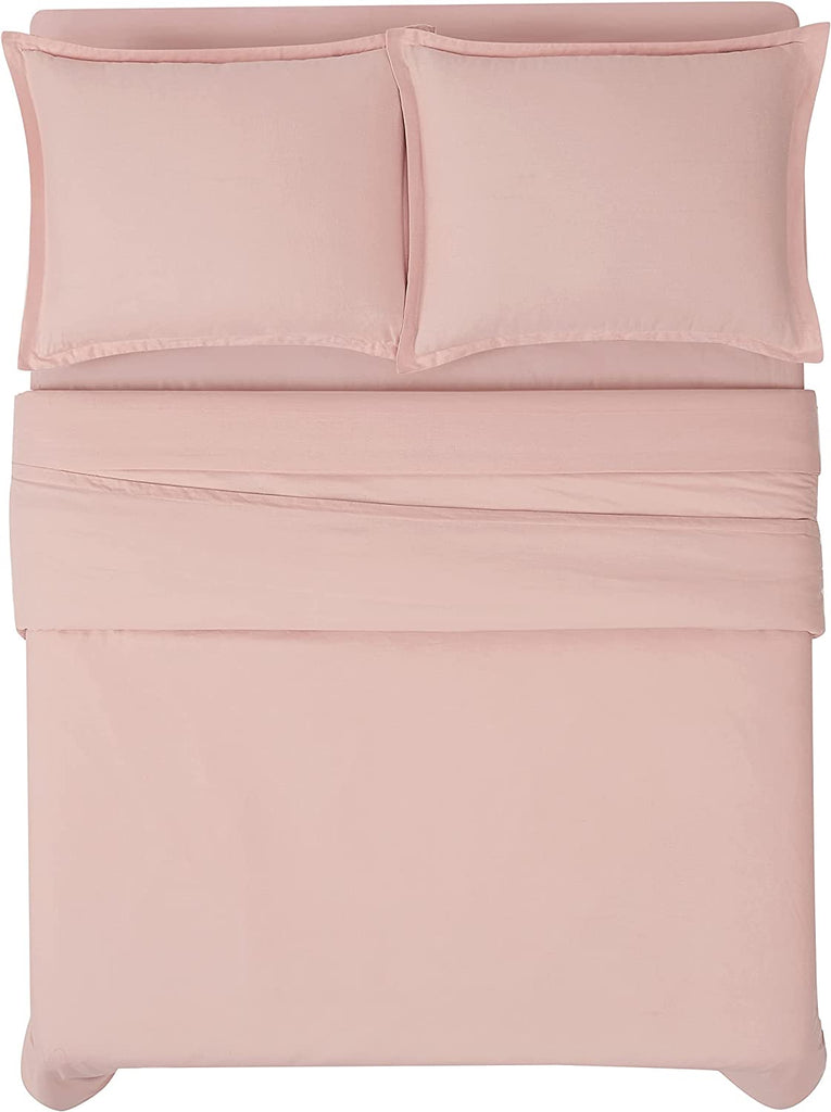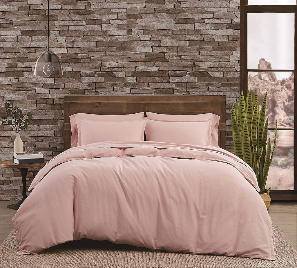 3 Piece Queen Duvet and Sham Set Quick Drying, Breathable Cotton Linen Blend Blush