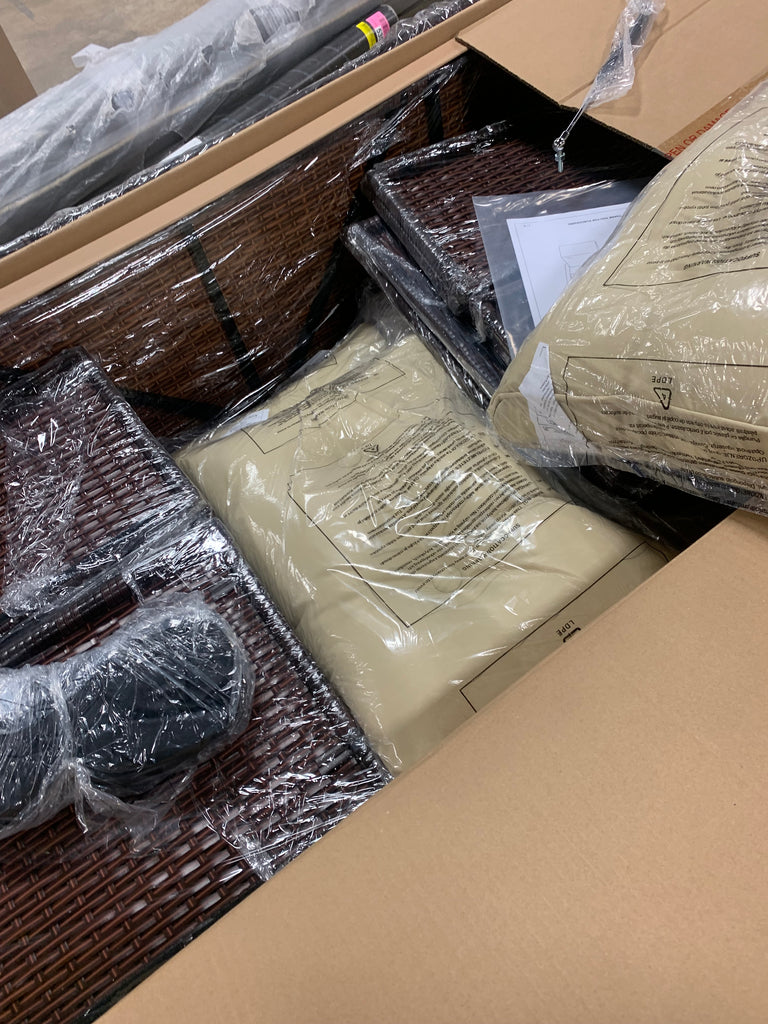 3 Piece Steel Framed Wicker Outdoor Conversation Set - Beige