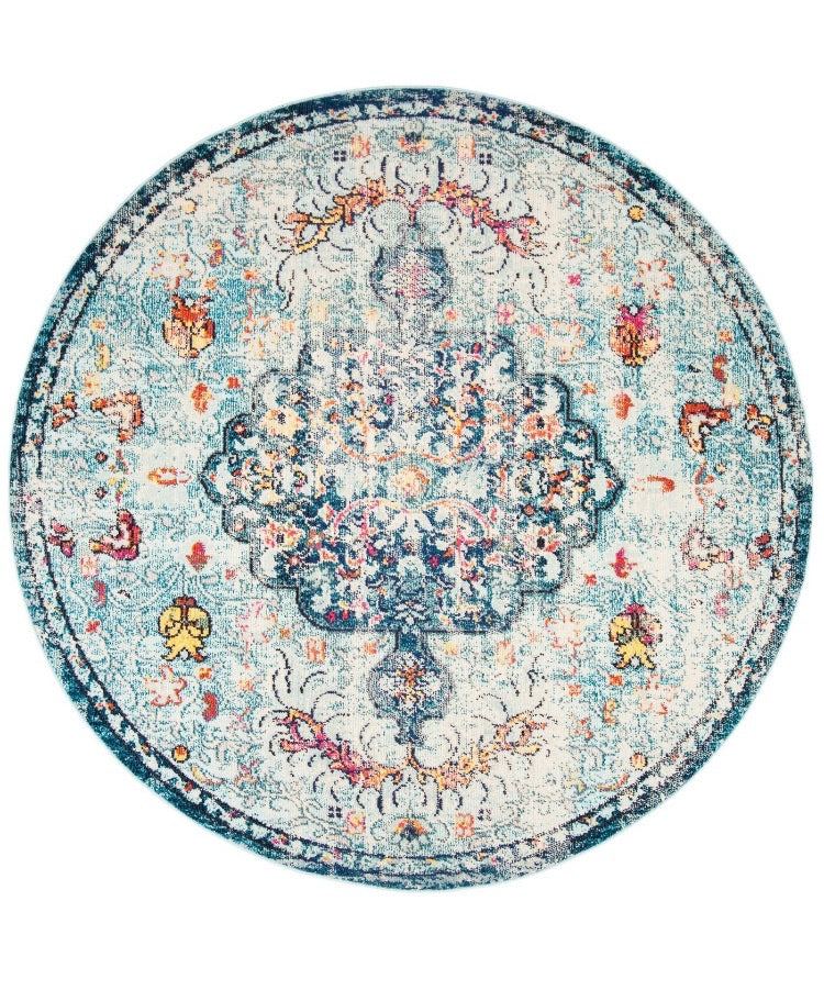 3' Round Gutierez Oriental Blue/Red/Beige Area Rug CG289