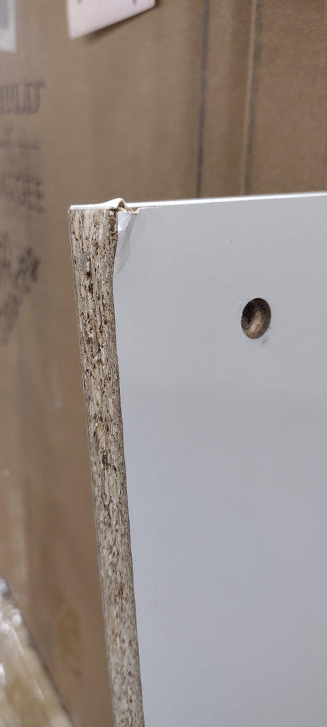 Note: as is: missing back panel piece, missing hardware & instructions. side piece has damage to corner as show in in-house photos.