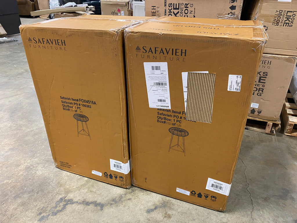 Items are in GREAT condition. This is an opened in-box item. Stools come in TWO BOXES. No assembly required. Set includes two bar stools; approximately 30" seat height.