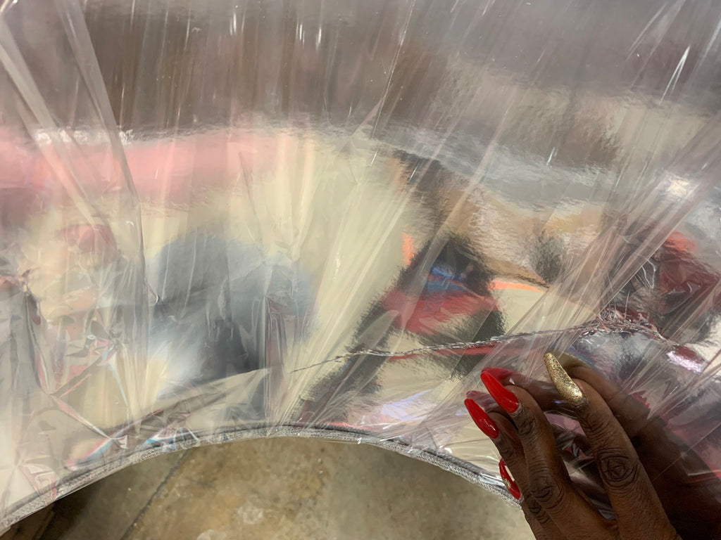 Open Packaging, Size: 34", there is some damage to the lamp shade and no hardware included please see in-house photos for more details
