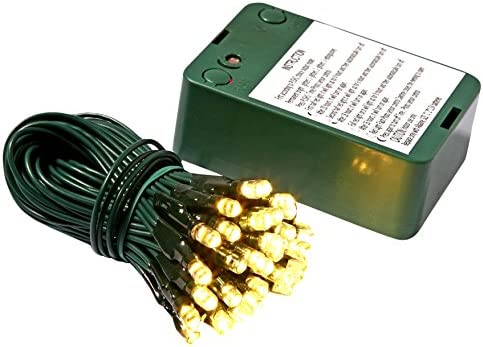 35 Count Battery Operated Wide-Angle LED Light Set with Timer and Sensor, Green Wire, Warm White