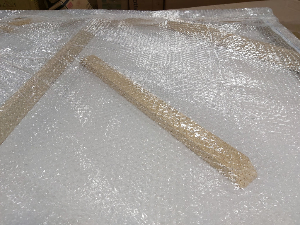 Open box, The color is Wrapped Canvas , Size: 36 x 48 x1.5, One of the supporting rack at the back is broken. Please see in house photo.