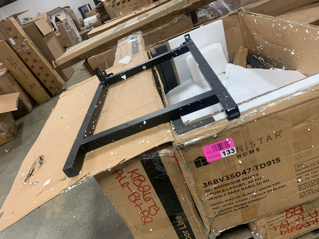 Open Packaging, SOLD AS IS ...THIS IS THE VANITY BASE ONLY.....vanity top, hardware, marble sides and sink are not included ....there are some scratches and minor damages please see in house photos