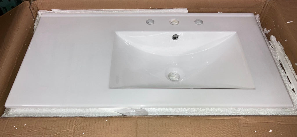 Open box, Size: 8" Off Center, HARDWARE AND FAUCET NOT INCLUDED - Vanity Top ONLY!